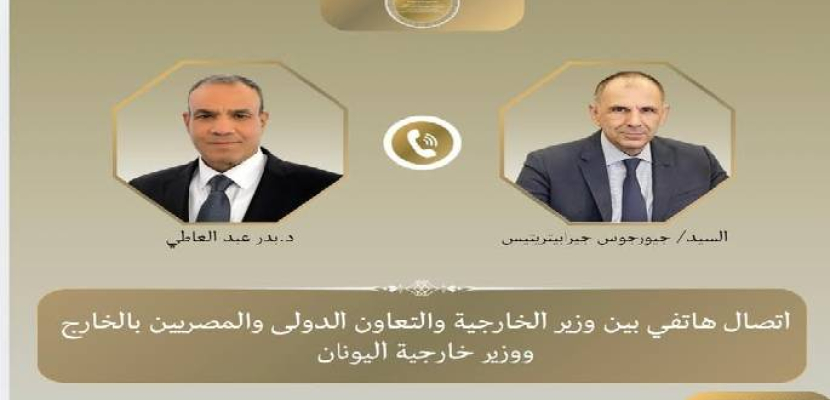 جاء ذلك خلال اتصال هاتفي تلقاه وزير الخارجية اليوم الاثنين من نظيره اليوناني جيورجوس جيرابيتريتيس، في إطار التواصل الدوري لتبادل الرؤى بشأن مستجدات الأوضاع الإقليمية.