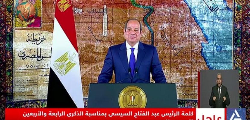 جاء ذلك في كلمة ألقاها الرئيس السيسي، صباح اليوم السبت ؛ بمناسبة الاحتفال بالذكرى الرابعة والأربعين لتحرير سيناء.